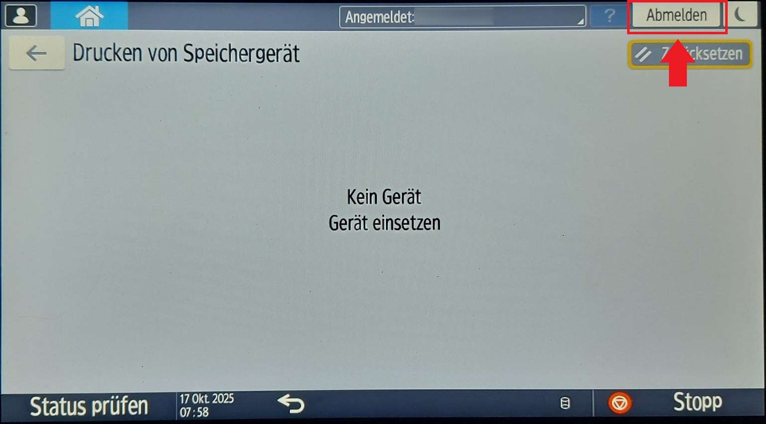 12. Das MuFu meldet, dass kein Speichermedium mehr angeschlossen ist.