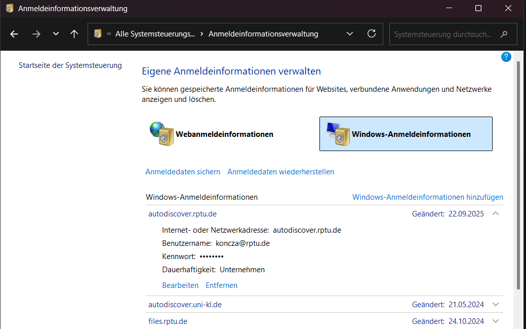 Option 1: Löschen des Auto-Discover-Eintrags in den Windows-Anmeldeinformationen
