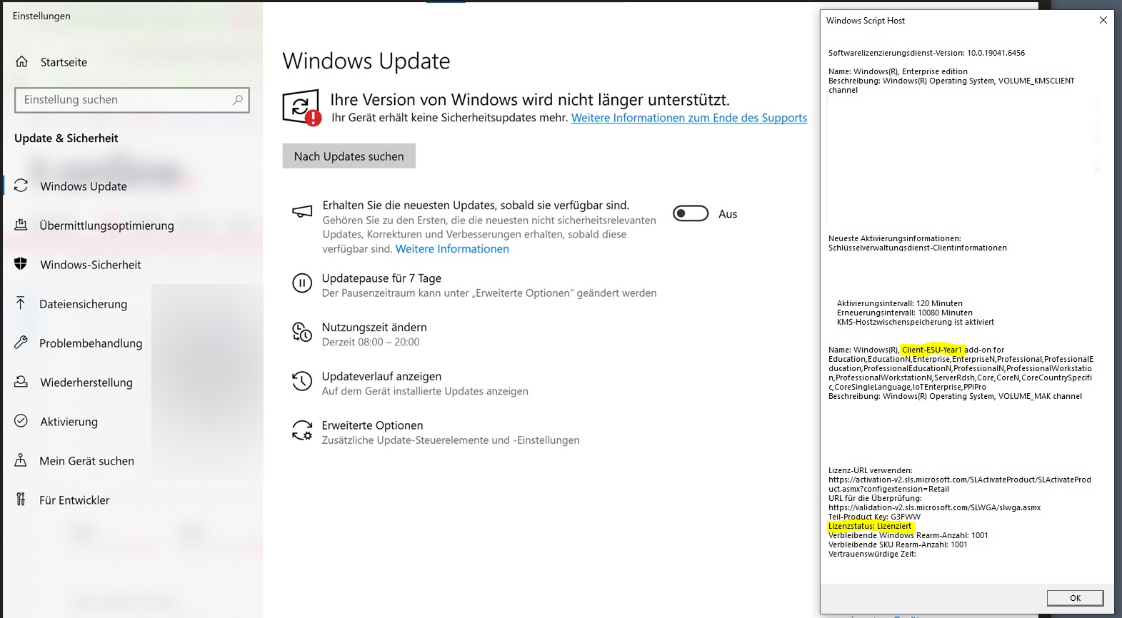 Ausschlaggebend ist die Information im Softwarelizenzierungsdienst, dass dort: