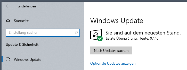 In Windows 10 unter dem Startmenü > Einstellungen > Update & Sicherheit können Sie den Updatestatus überprüfen.